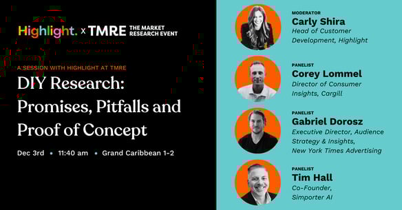 This December, Highlight’s Carly Shira, Head of Customer Development, had the pleasure of moderating TMRE 2024’s panel: Harnessing the Power of DIY Research Tools with AI. The panel featured market research experts from across industries, including: