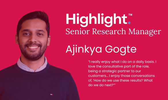 Ajinkya Gogte joined the Highlight team as a Senior Research Manager in early 2025. His career has brought him both to the brand side with big names like PepsiCo, Unilever, Nivea, as well as the research solutions side with even more big names like Nielsen, Kantar, and now Highlight.